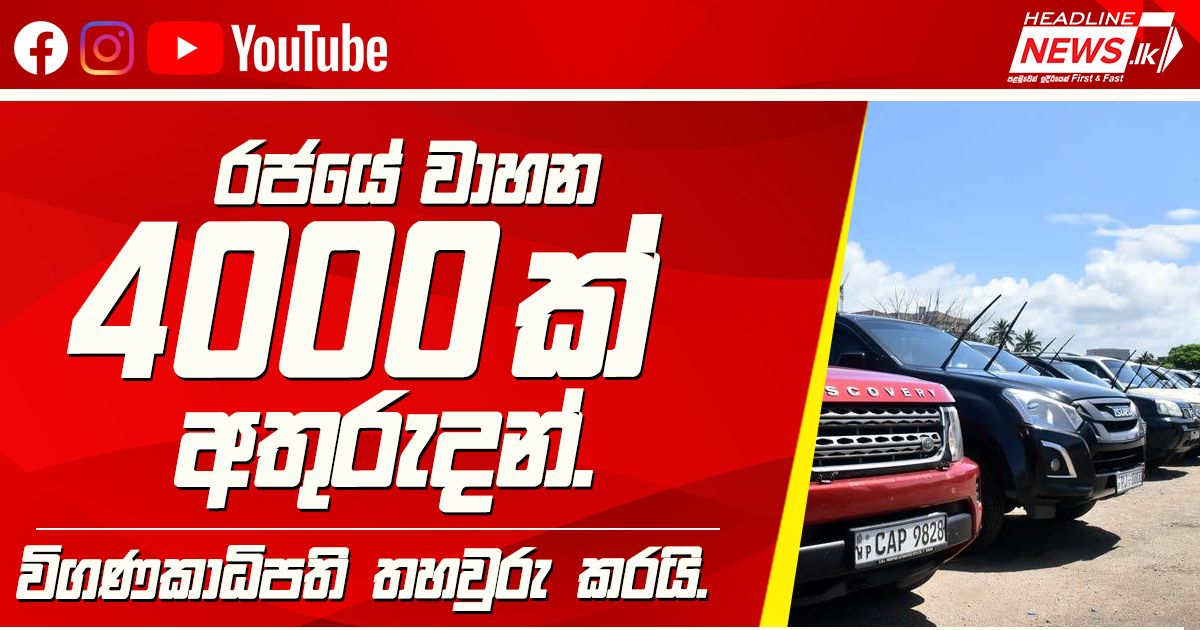 "රජයේ වාහන 4000 ක් අතුරුදන්." විගණකාධිපති තහවුරු කරයි. පසුගිය කාල සීමාව තුළ ජනාධිපති ලේකම් කාර
