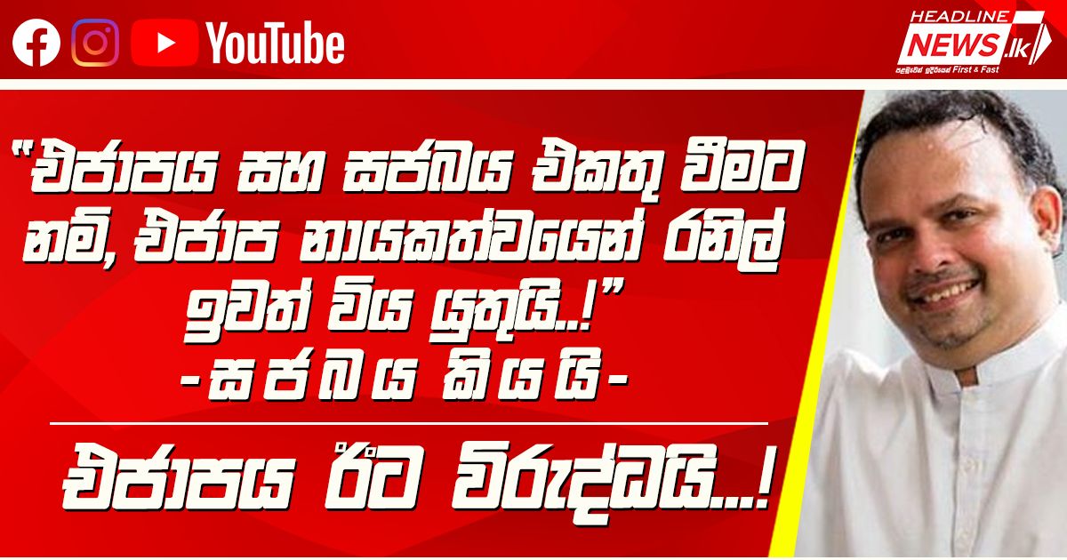 "එජාපය සහ සජබය එකතු වීමට නම්, එජාප නායකත්වයෙන් රනිල් ඉවත් විය යුතුයි..!" සජබය කියයි. එජාපය ඊට