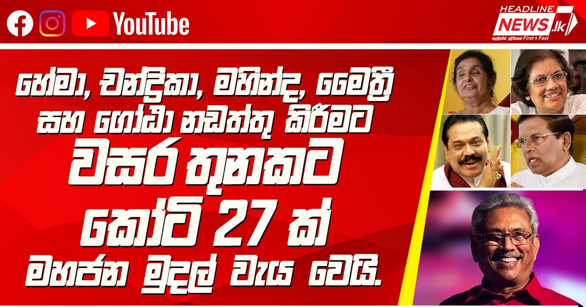 හේමා, චන්ද්රිකා, මහින්ද, මෛත්රී සහ ගෝඨා නඩත්තු කිරීමට වසර තුනකට කෝටි 27 ක් මහජන මුදල් වැ