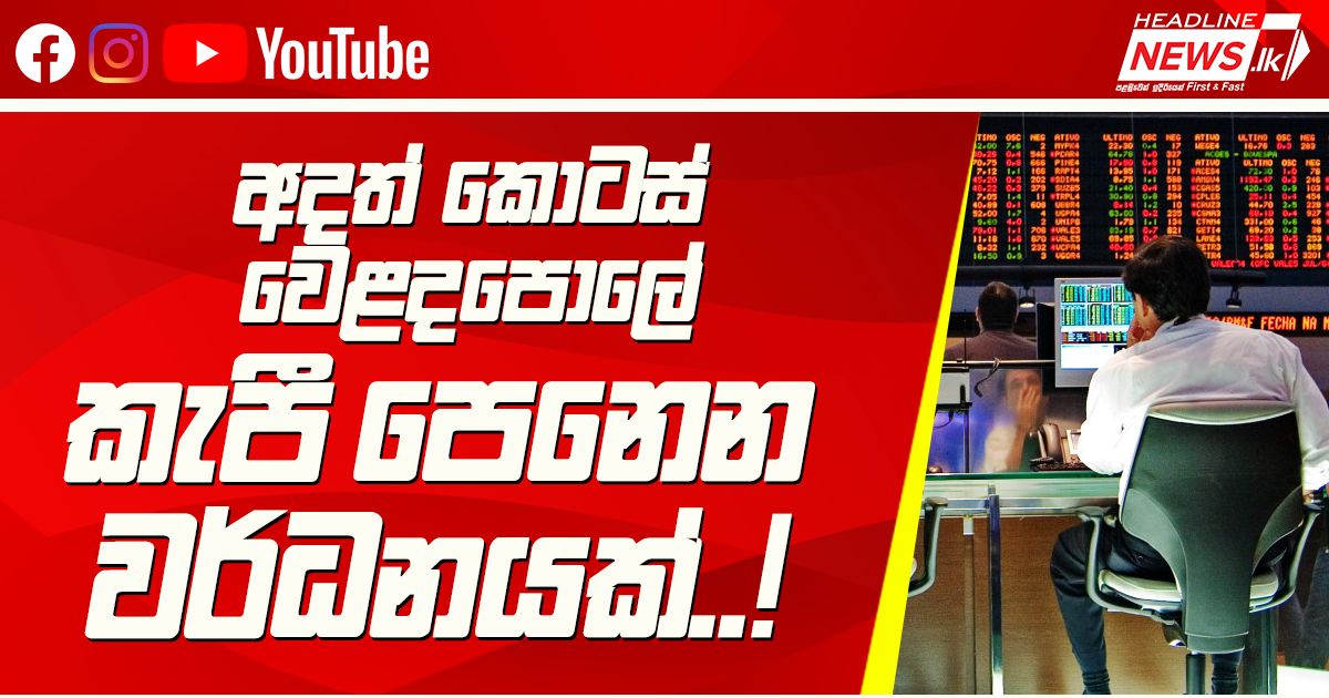 අදත් කොටස් වෙළදපොලේ කැපී පෙනෙන වර්ධනයක්..!කොළඹ කොටස් වෙළදපොලේ කැපී පෙනෙන වර්ධනයක් අද දිනයේ ද
