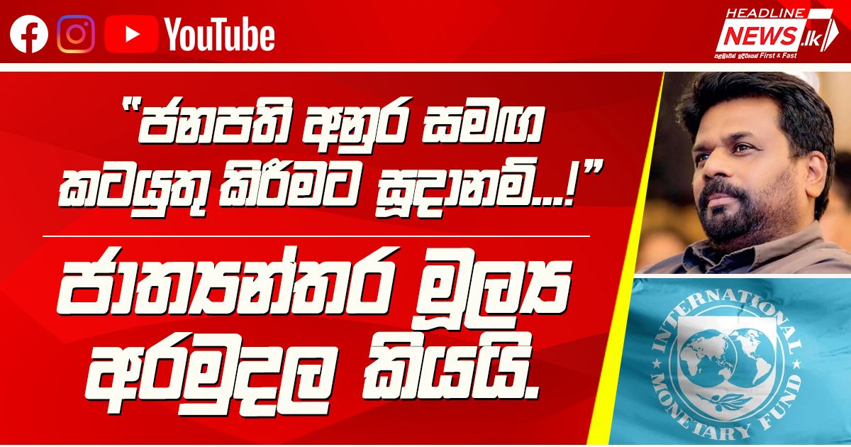 "ජනපති අනුර සමඟ කටයුතු කිරීමට සූදානම්...!" ජාත්යන්තර මූල්ය අරමුදල කියයි. අභිනවයෙන් තේරී ප