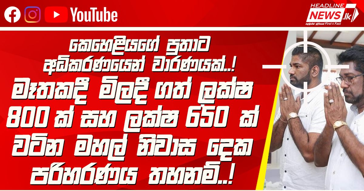 කෙහෙළියගේ පුතාට අධිකරණයෙන් වාරණයක්..! මෑතකදී මිලදී ගත් ලක්ෂ 800 ක් සහ ලක්ෂ 650 ක් වටින මහල