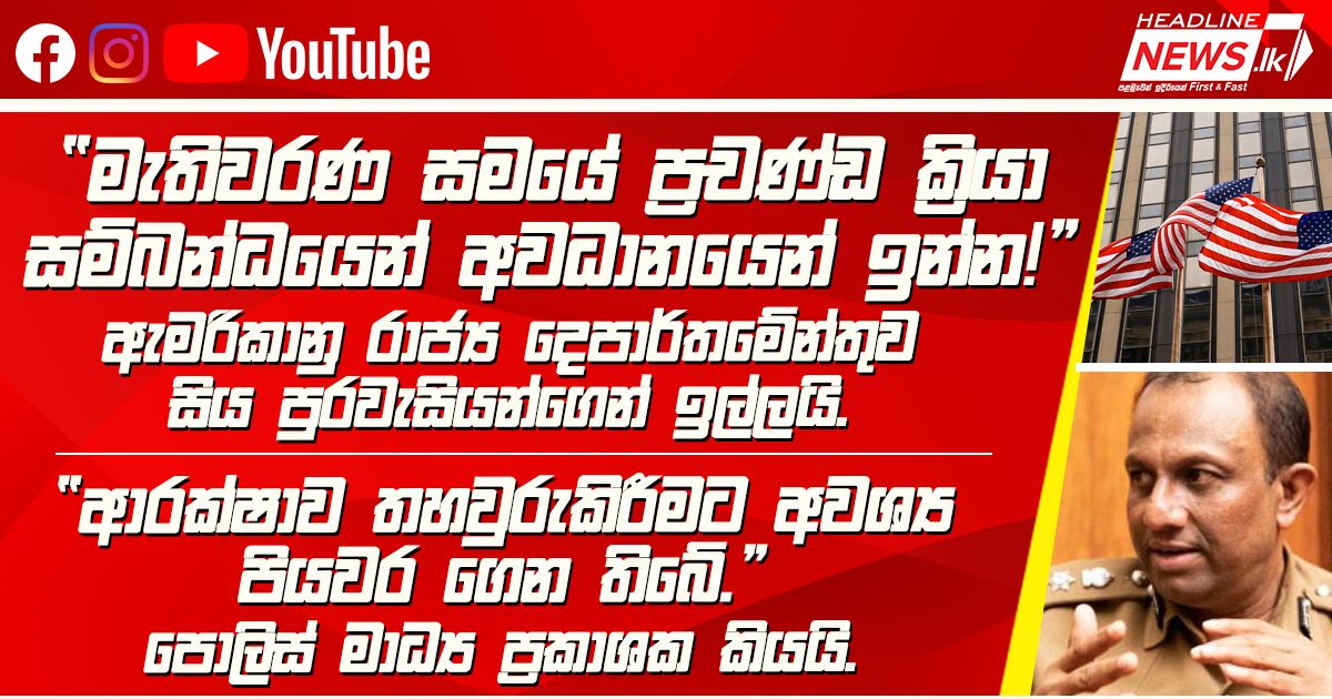 “මැතිවරණයට පෙර හා පසුව ඇති විය හැකි ප්රචණ්ඩ ක්රියා සම්බන්ධයෙන් අවධානයෙන් ඉන්න!” ඇමරිකා