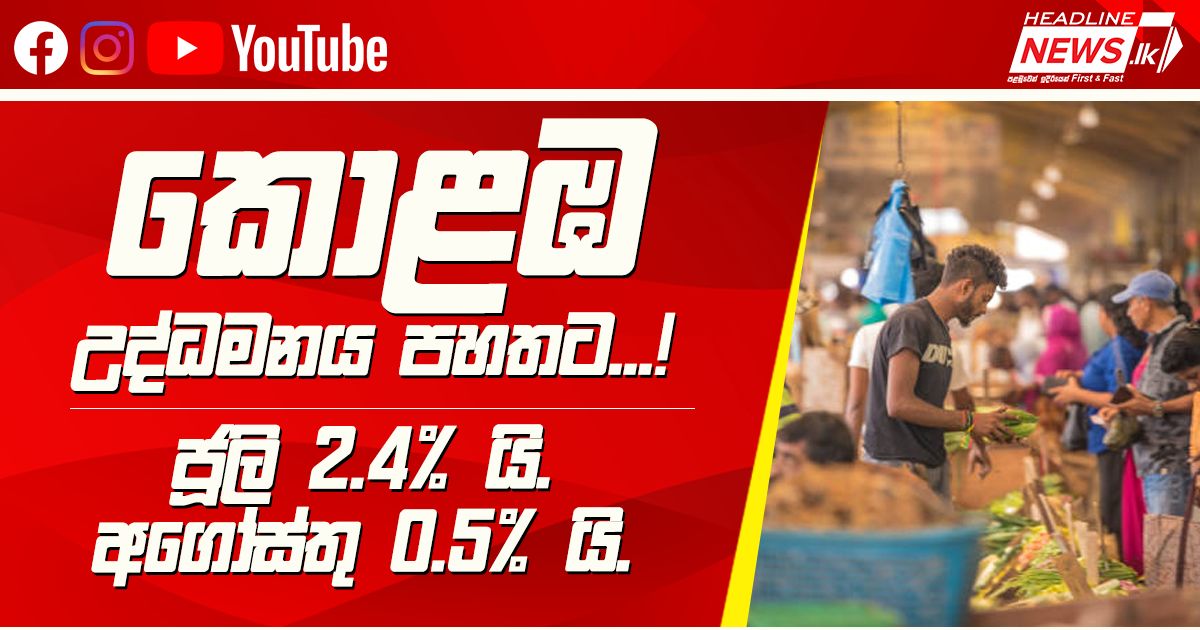 කොළඹ උද්ධමනය පහතට...!ජූලි 2.4% යි. අගෝස්තු 0.5% යි. කොළඹ දිස්ත්රික්කයේ උද්ධමන අනුපාතය අගෝස්ත