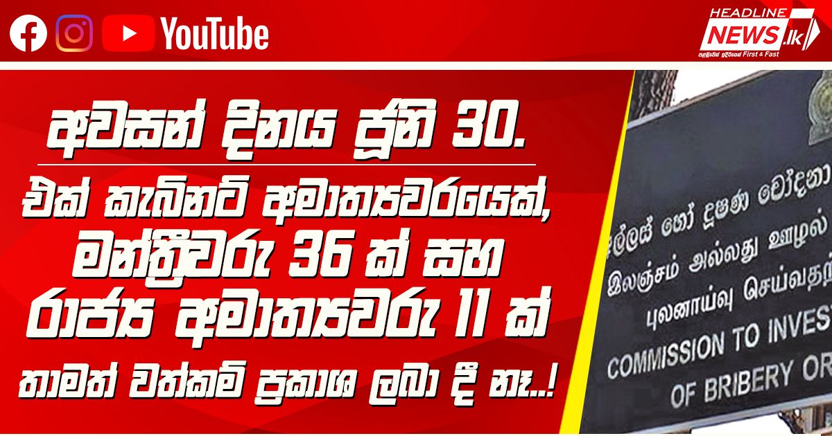 අවසන් දිනය ජූනි 30. එක් කැබිනට් අමාත්යවරයෙක්, මන්ත්රීවරු 36 ක් සහ රාජ්ය අමාත්යවරු 11 ක්
