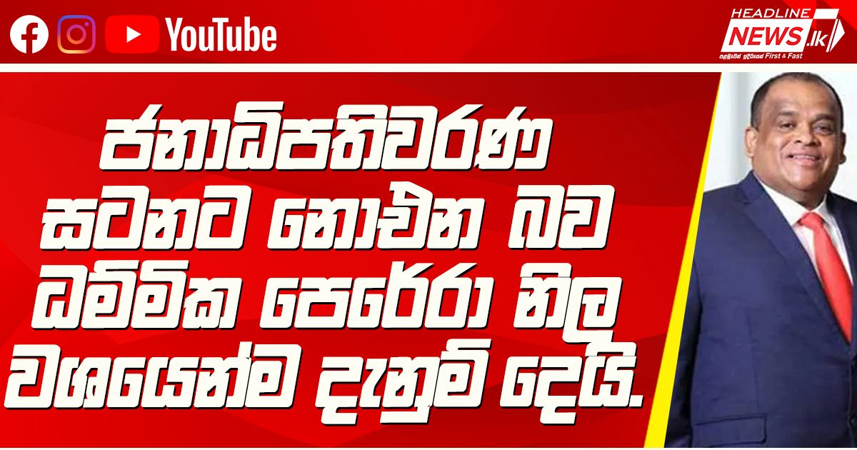 ජනාධිපතිවරණ සටනට නොඑන බව ධම්මික පෙරේරා නිල වශයෙන්ම දැනුම් දෙයි.පෞද්ගලික හේතූන් මත, තමන් ඉද