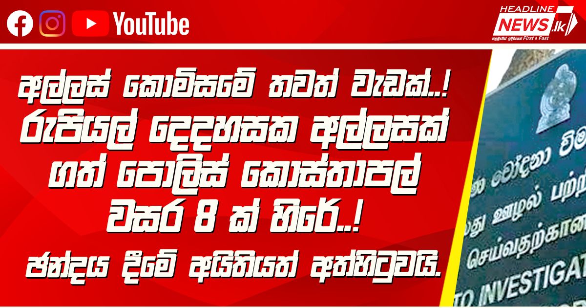 අල්ලස් කොමිසමේ තවත් වැඩක්..! රුපියල් දෙදහසක අල්ලසක් ගත් පොලිස් කොස්තාපල් වසර 8 ක් හිරේ..!ඡන