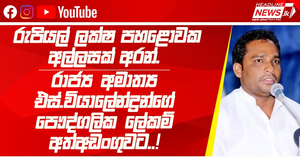 රුපියල් ලක්ෂ පහළොවක අල්ලසක් අරන්. රාජ්ය අමාත්ය එස්.වියාලේන්ද්රන්ගේ පෞද්ගලික ලේකම