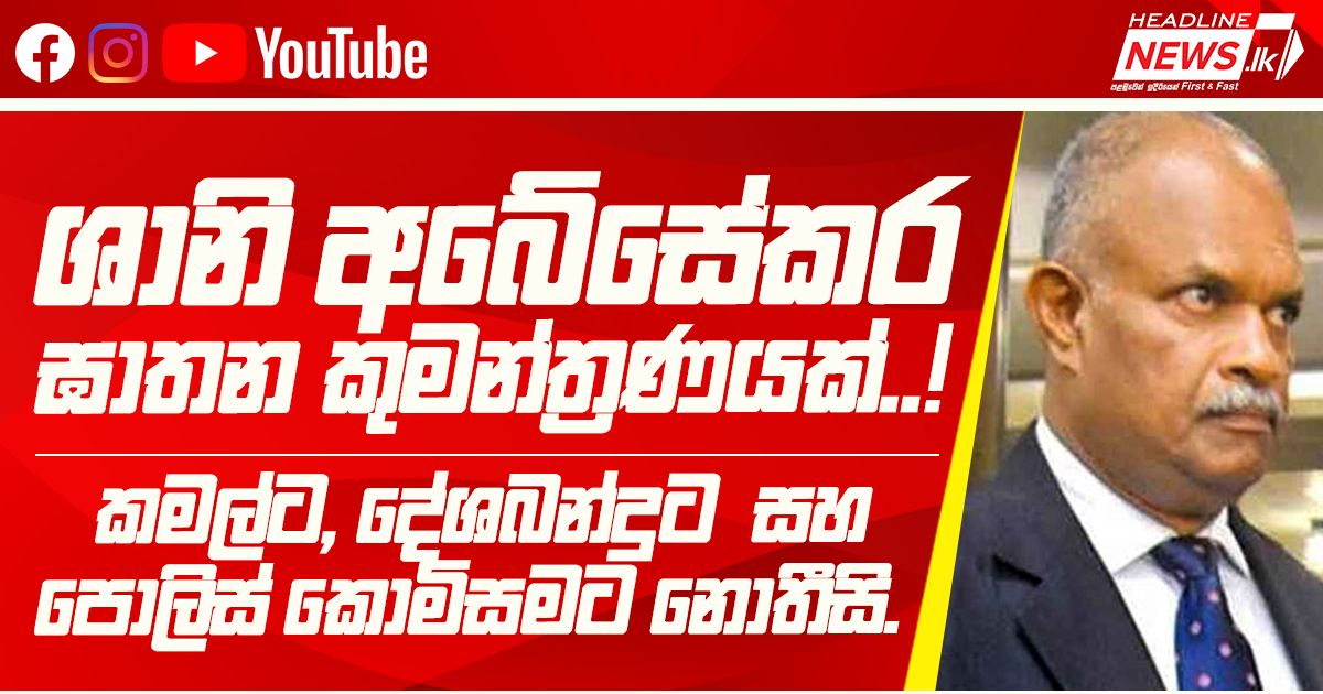 ශානි අබේසේකර ඝාතන කුමන්ත්රණයක්..!කමල්ට, දේශබන්දුට සහ පොලිස්කොමිසමට නොතීසි. අපරාධ පරීක්