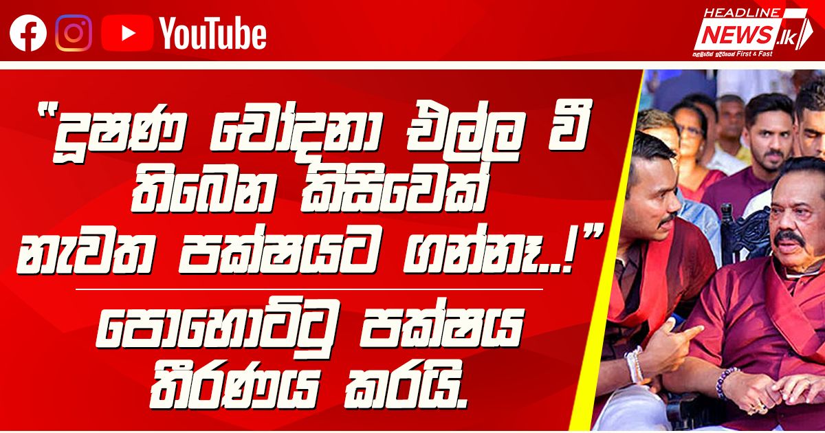 "දූෂණ චෝදනා එල්ල වී තිබෙන කිසිවෙක් නැවත පක්ෂයට ගන්නෑ..!" පොහොට්ටු පක්ෂය තීරණය කරයි. පක්ෂය
