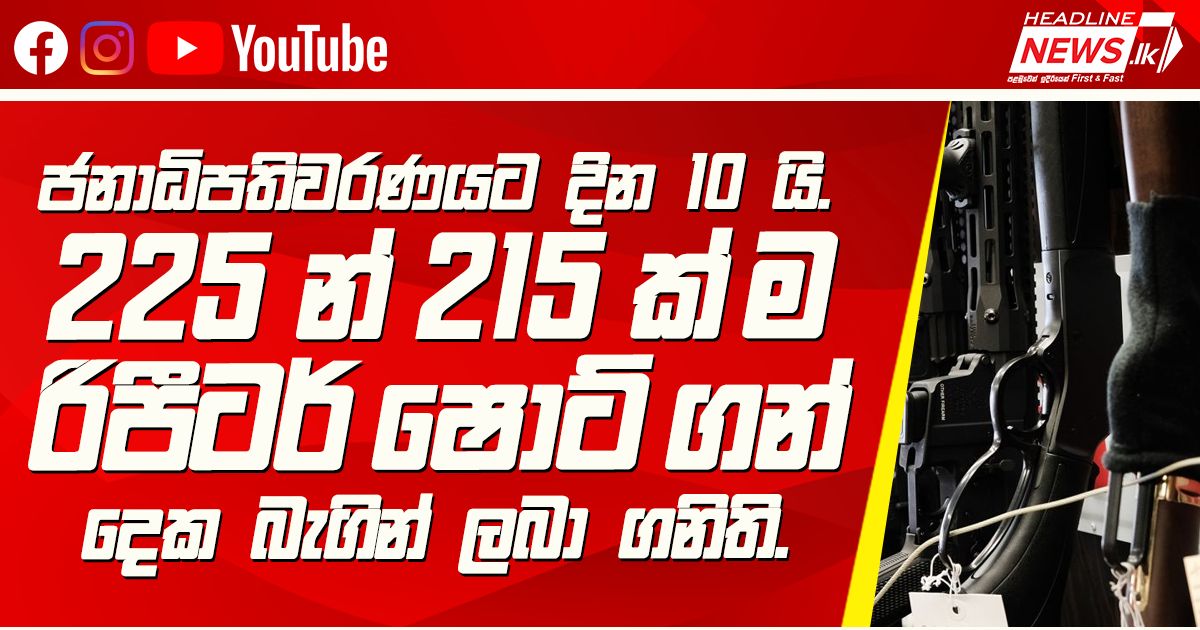 ජනාධිපතිවරණයට දින 10 යි. 225 න් 215 ක් ම රිපීටර් ෂොට් ගන් දෙක බැගින් ලබා ගනිති. ජනාධිපතිවරණයට තව