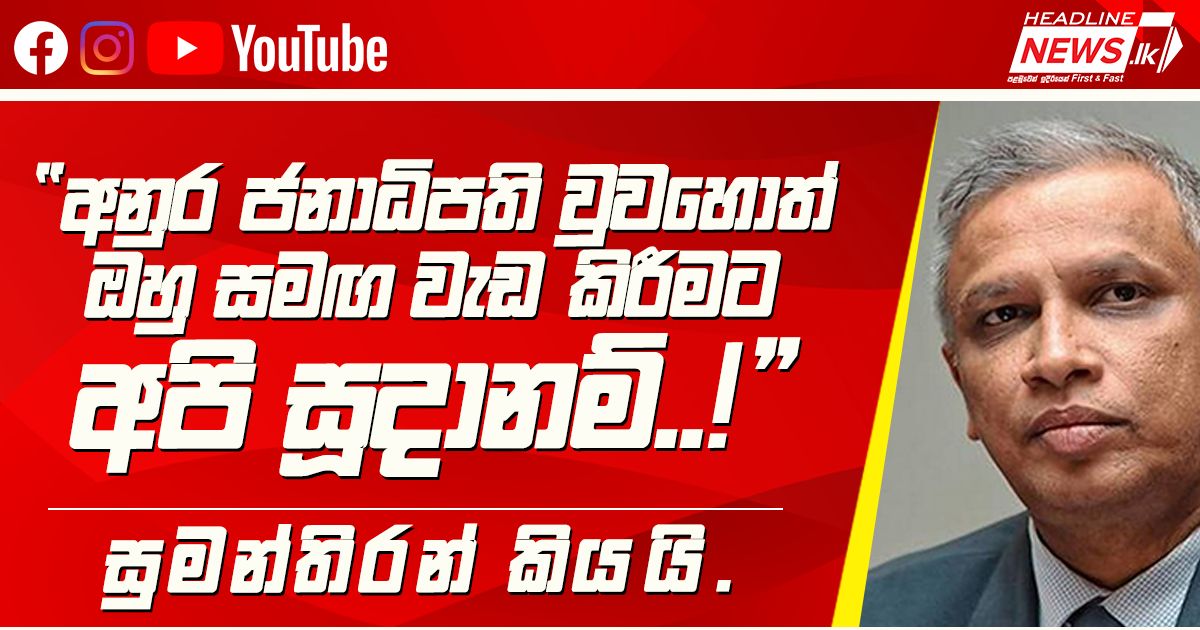 “අනුර ජනාධිපති වුවහොත් ඔහු සමඟ වැඩ කිරීමට අපි සූදානම්..!” - සුමන්තිරන් කියයි. අනුර කුමාර
