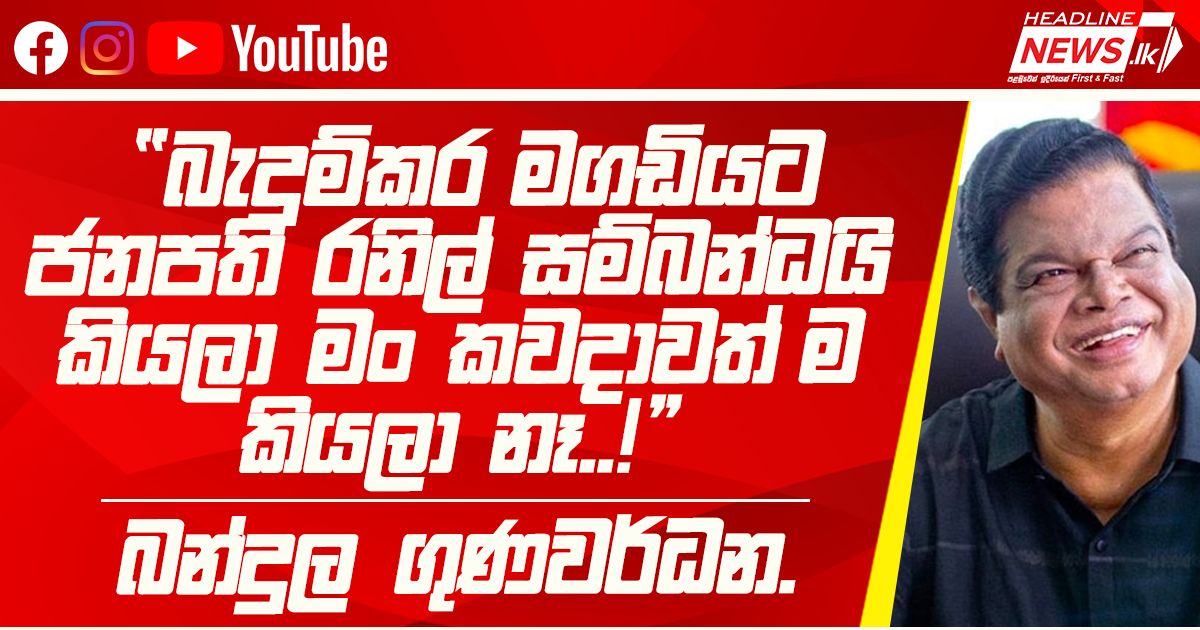 “බැදුම්කර මගඩියට ජනපති රනිල් සම්බන්ධයි කියලා මං කවදාවත් ම කියලා නෑ..!” බන්දුල ගුණවර්ධන.