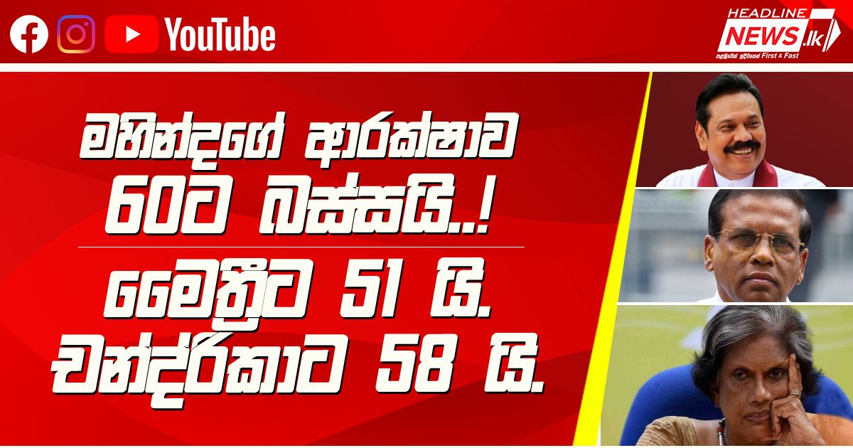 මහින්දගේ ආරක්ෂාව 60ට බස්සයි..! මෛත්රීට 51 යි. චන්ද්රිකාට 58 යි.හිටපු ජනාධිපති මහින්ද රාජපක්ෂ