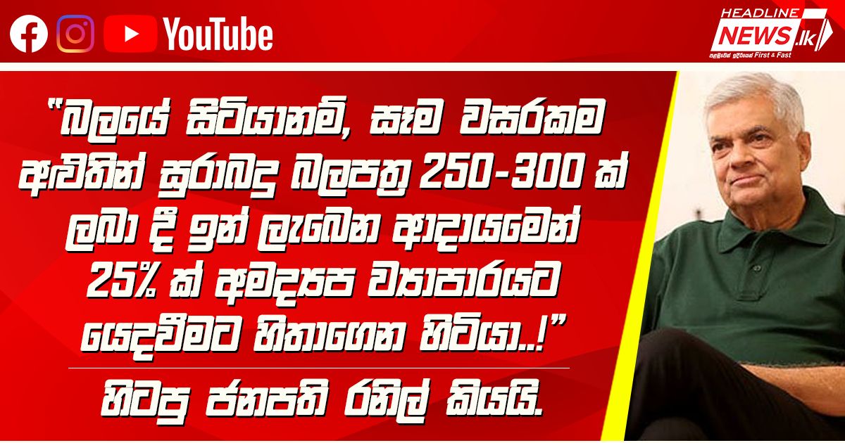 "බලයේ සිටියානම්, සෑම වසරකම අළුතින් සුරාබදු බලපත්ර 250-300 ක් ලබා දී ඉන් ලැබෙන ආදායමෙන් 25% ක්