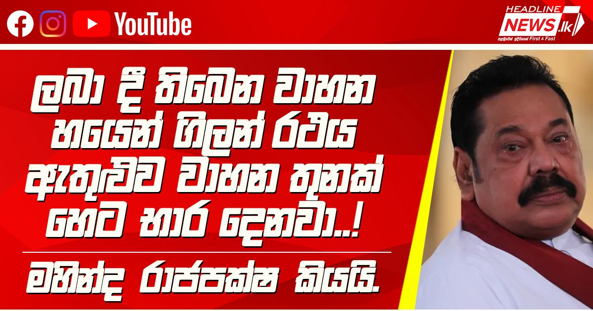 "ලබා දී තිබෙන වාහන හයෙන් ගිලන් රථය ඇතුළුව වාහන තුනක් හෙට භාර දෙනවා..!" මහින්ද රාජපක්ෂ කියයි.&