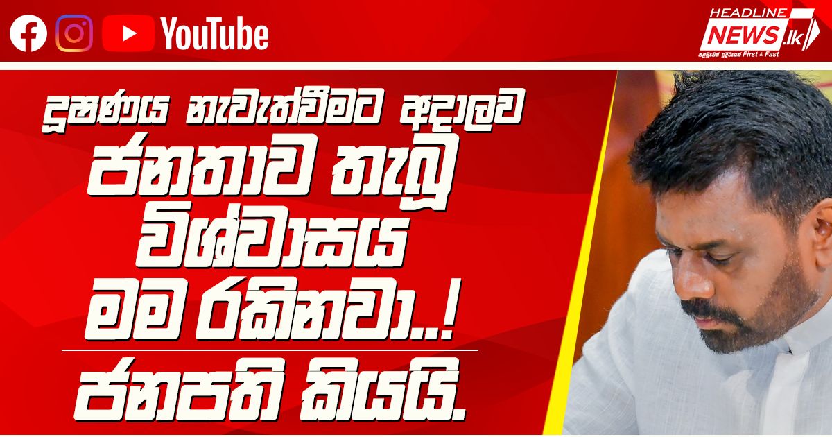 "දූෂණය නැවැත්වීමට අදාලව ජනතාව තැබූ විශ්වාසය මම රකිනවා..!" ජනපති කියයි. ජනාධිපති අනුර කුම