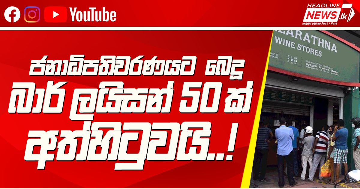 ජනාධිපතිවරණයට බෙදූ බාර් ලයිසන් 50 ක් අත්හිටුවයි..!ජනාධිපතිවරණ සමයේ කඩිමුඩියේ බෙදා හරින ලද ත