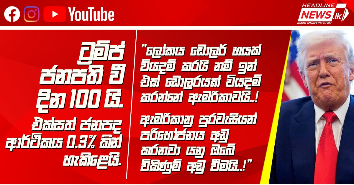 ට්රම්ප් ජනපති වී දින 100 යි. එක්සත් ජනපද ආර්ථිකය 0.3% කින් හැකිළෙයි.ට්රම්ප් දෙවන ධූර කාලය සදහා