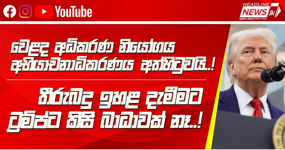 වෙළද අධිකරණ නියෝගය අභියාචනාධිකරණය අත්හිටුවයි..! තීරුබදු ඉහළ දැමීමට ට්රම්ප්ට කිසි බාධාව