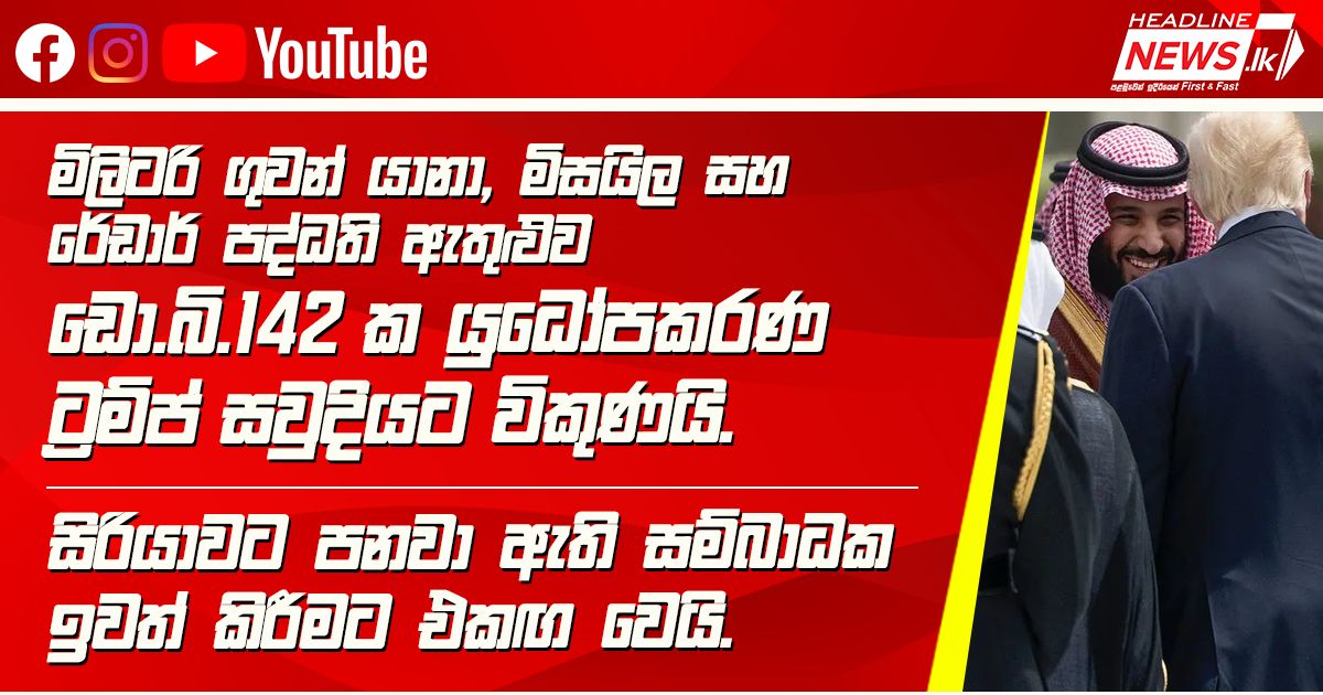 ඩොලර් බිලියන 142 ක යුධෝපකරණ ට්රම්ප් සවුදියට විකුණයි.දෙවන ධූර කාලය ආරම්භ කළ ඩොනල්ඩ් ට්රම්ප්