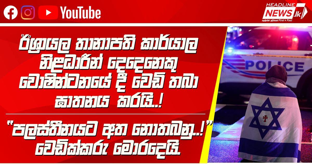 ඊශ්රායල තානාපති කාර්යාල නිළධාරීන් දෙදෙනෙකු වොෂින්ටනයේ දී වෙඩි තබා ඝාතනය කරයි..! ඊශ්රායල