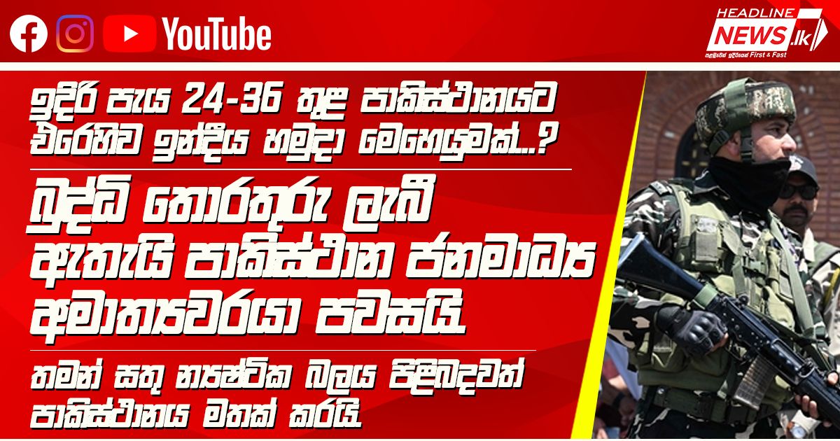 "ඉදිරි පැය 24-36 අතර කාලයේ දී පාකිස්ථානයට එරෙහිව ඉන්දීය හමුදා මෙහෙයුමක්...?" බුද්ධි තොරතුරු ලැ