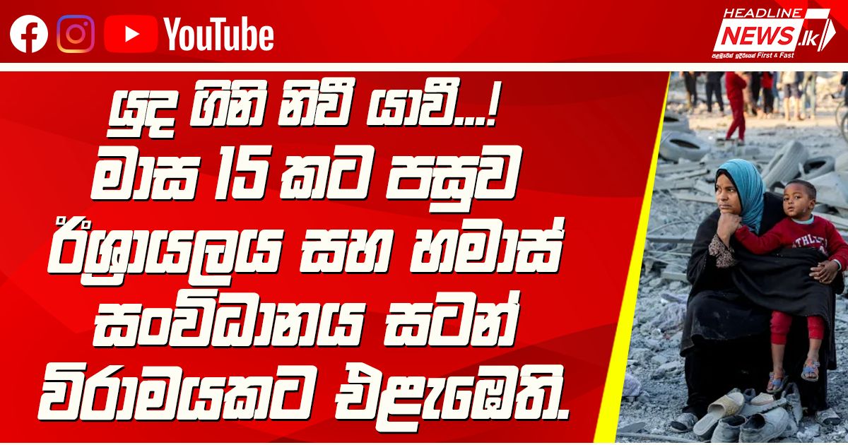 මාස 15 කට පසුව ඊශ්රායලය සහ හමාස් සංවිධානය සටන් විරාමයකට එළැඹෙති.ඊශ්රායලය සහ හමාස් සංවිධා