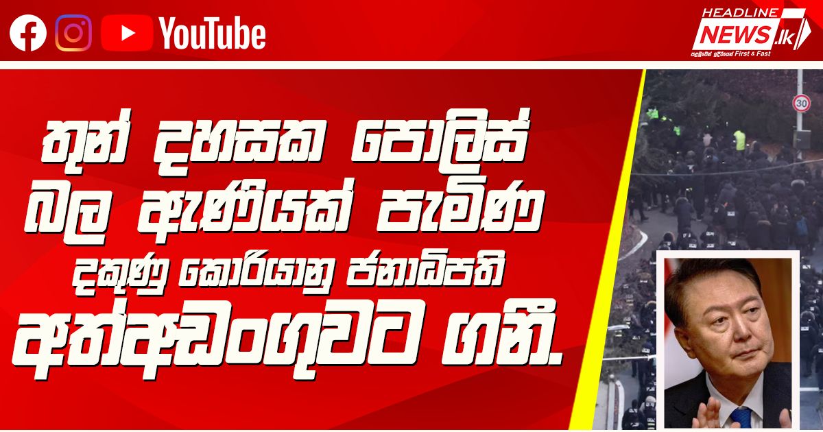 තුන් දහසක පොලිස් බල ඇණියක් පැමිණ දකුණු කොරියානු ජනාධිපති අත්අඩංගුවට ගනී. දෝශාභියෝගයක